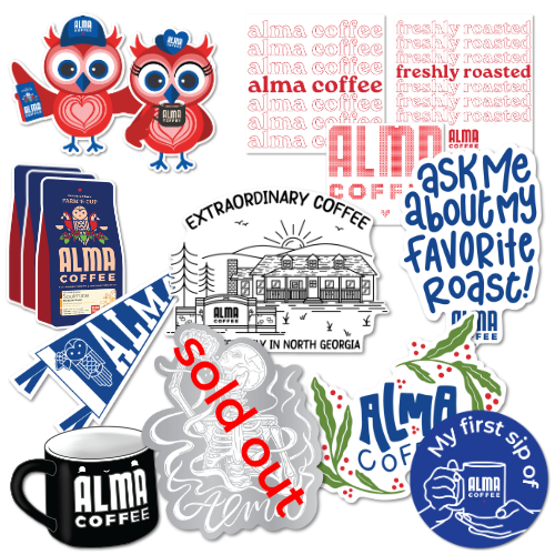 Our rotating offering of stickers changes all the time but rest assured, we'll be keeping this listing updated so you can always see the latest and greatest Alma Coffee stickers available. Stickers are durable and waterproof so you can stick them on almost anything to rep your Alma love. As designs vary, the size of the sticker may vary but on average we try to do a 3in x 3in design and then adjust based on the dimensions of the design.
